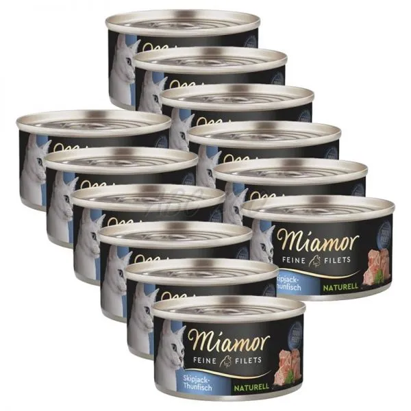 Miamor Feine Filets Naturell conține numai fileuri de ton light în suc propriu, atât pentru pisicile adulte, cât și pentru cele senior.