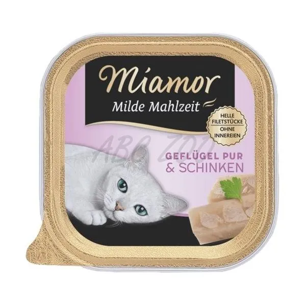 Miamor Milde Mahlzeit carne de pasăre & șuncă 100 g Hrană umedă completă pentru pisici adulte.