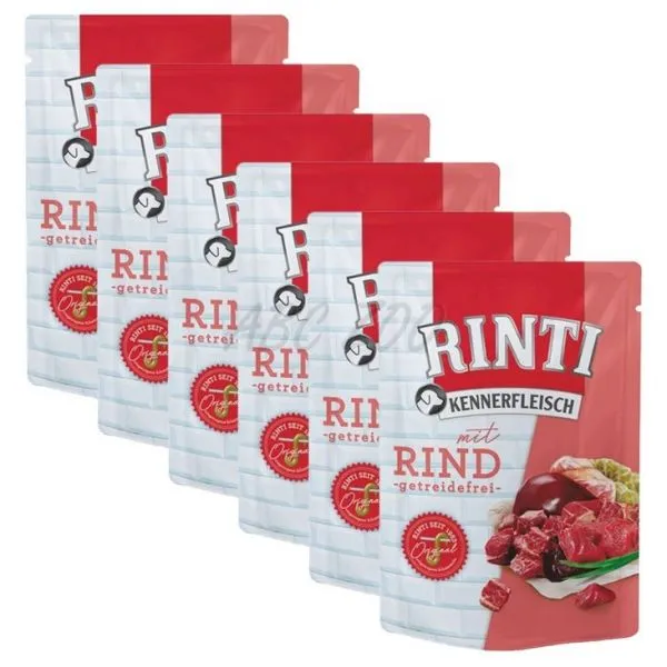 RINTI pungă de carne proaspătă bogată în bucăți de carne naturală, potrivită pentru câini adulți.