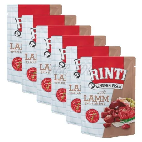RINTI carne proaspătă bogată în bucăți de carne naturală, potrivită pentru câini adulți.