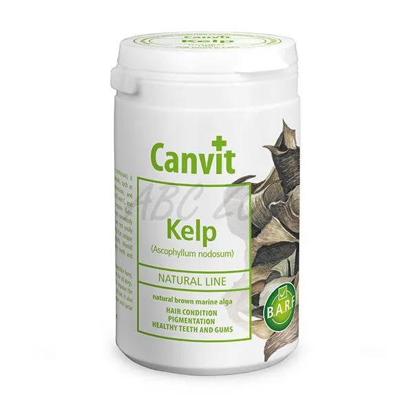 Kelpa are caracteristici extraordinare antioxidante. Susține o funcție adecvată a tiroidei și susține sistemul imunitar. Adăugând acest supliment la hrana Canvit Natural Line KELP se îmbunătățește condiția fizică, luciul blănii și calitatea acesteia. Reduce formarea plăcii, pietrei și apariția mirosului neplăcut în gură.