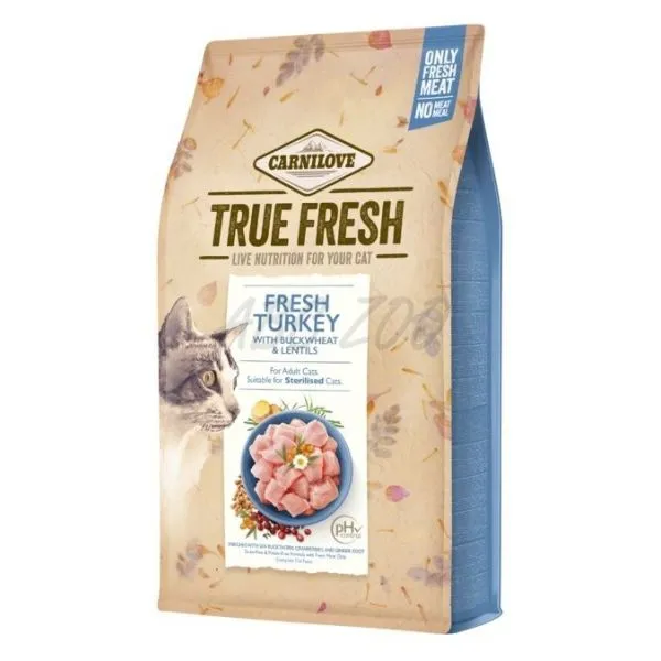 Carnilove True Fresh Turkey este o hrană fără cereale, cu carne proaspătă de curcan pentru pisici adulte.