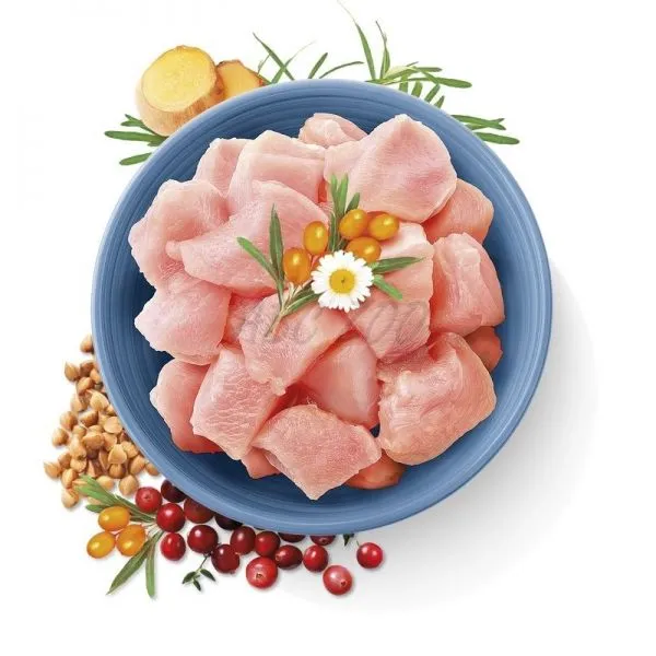 Ingrediente: Carne proaspătă de curcan (70%), proteine de mazăre, linte roșie, hrișcă (4%), arome naturale, grăsime de pui, ulei de somon (1%), clorură de sodiu, clorură de potasiu, alge uscate (Ascophyllum nodosum, 0,5%), proteine Lemna (0,5%), făină de mazăre, cătină de mare uscată (0,2 %), rădăcină de ghimbir uscată (0,1 %), afine uscate (0,1 %), rozmarin uscat (0,1 %), afine uscate (vaccinium oxycoccos) (0,1 %), cimbru uscat (0,1 %), drojdie de bere (sursă de manan oligozaharide, 0,015 %), rădăcină de cicoare (sursă de fructo-oligozaharide, 0,015 %), yucca schidigera (0,008 %)