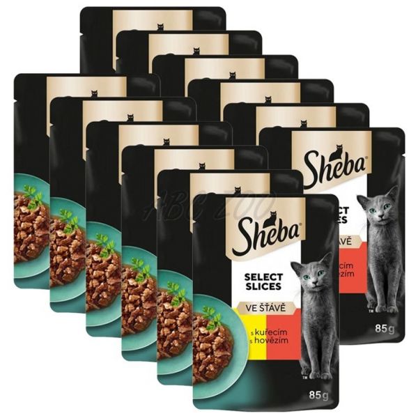Sheba Select Slices Pliculeț cu carne de pui și vită în sos 12 x 85 g