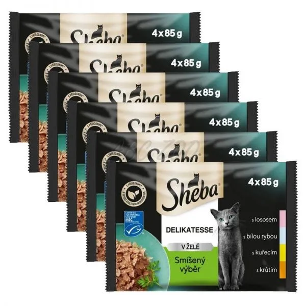 Sheba Delikatesse Pliculețe cu alegere mixtă în jeleu 6 x (4 x 85 g)
