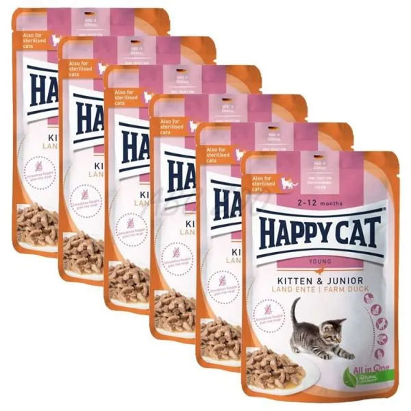 Happy Cat Plic Kitten & Junior Land Ente 6 x 85 g