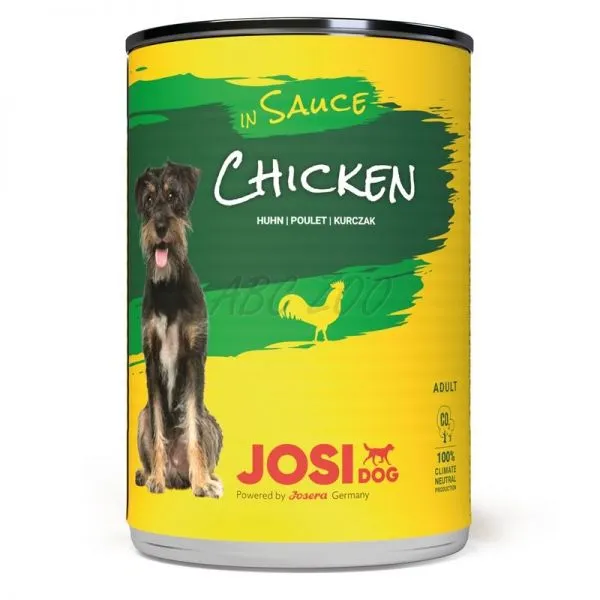 JOSIDOG Chicken In Sauce conține bucăți fragede în suc cu pui pentru câini adulți de toate rasele.