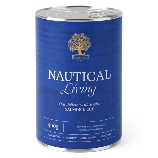 Essential Foods Nautical Living Paté este o hrană umedă completă pentru câini care combină somonul și codul pentru a promova sănătatea și vitalitatea.