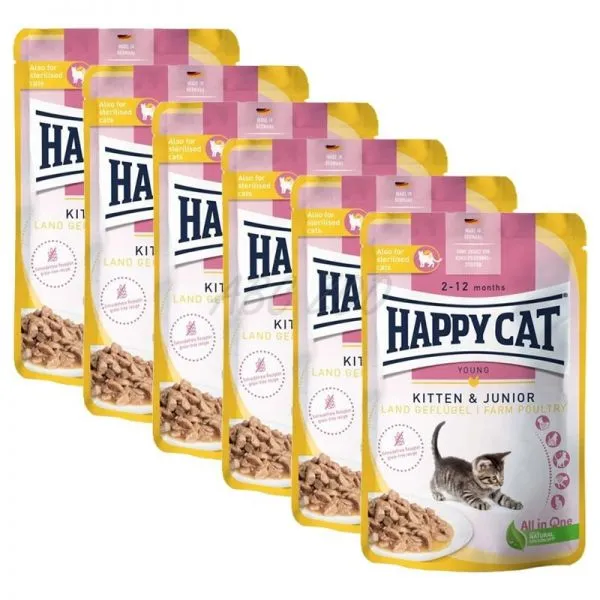 Happy Cat Pliculeț Kitten & Junior Land Geflügel 6 x 85 g