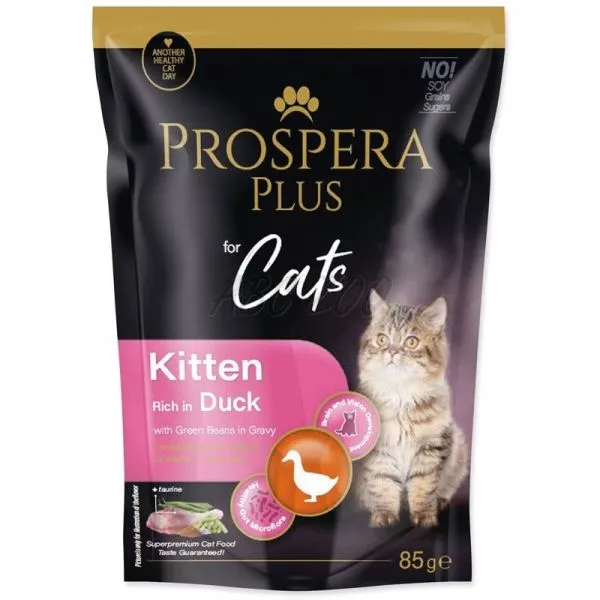 Prospera Plus Kitten rață și fasole verde pliculeț 85 g