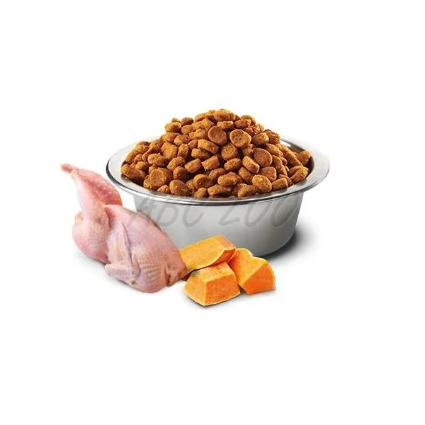 Cu un conținut de proteine animale de 96% și cu dovleac pentru proprietăți nutriționale excelente.