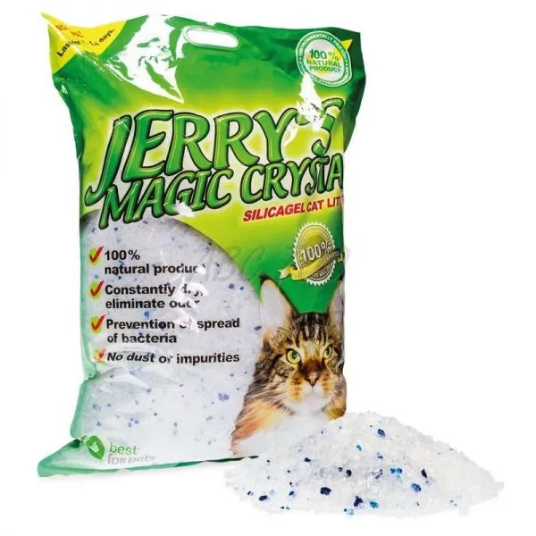 Jerry's Magic Crystals Natural este o litieră pentru pisici din silicat 100% naturală și foarte absorbantă