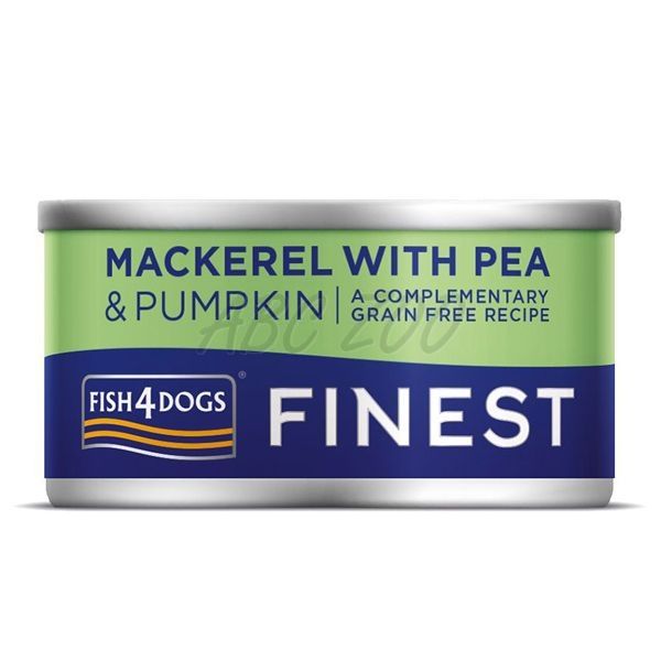 Fish4Dogs Finest Mackerel with Pea este o mâncare conservată pentru câini cu macrou, mazăre și dovleac, fabricată din pește și legume de înaltă calitate.