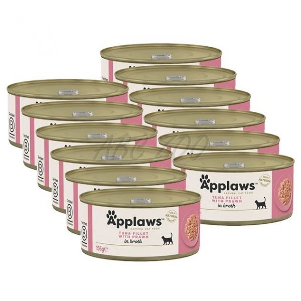 Applaws Hrană conservată pentru pisici cu ton și creveți în bulion 12 x 156 g