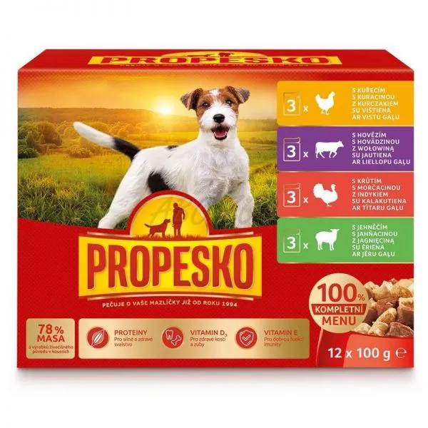 Propesko Dog Plic pui/vită/curcan/miel în sos 12 x 100 g