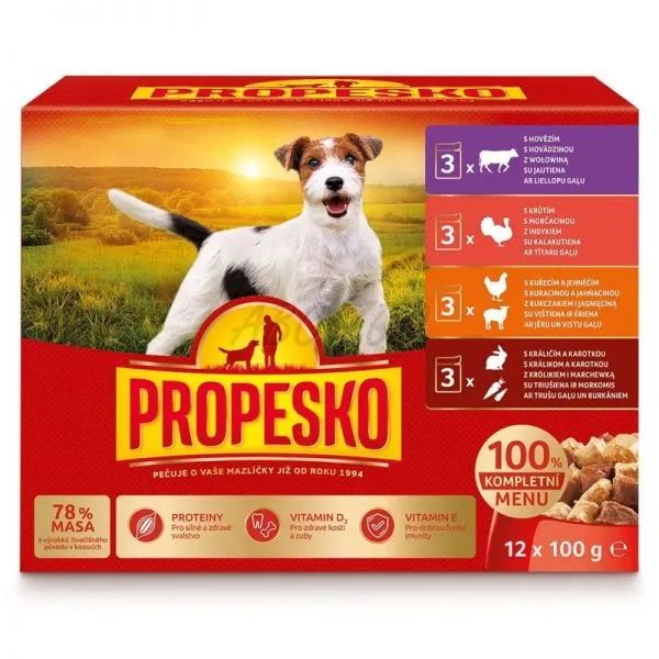 Propesko Dog Plic vită/curcan/miel-pui/iepure-morcov în sos 12 x 100 g
