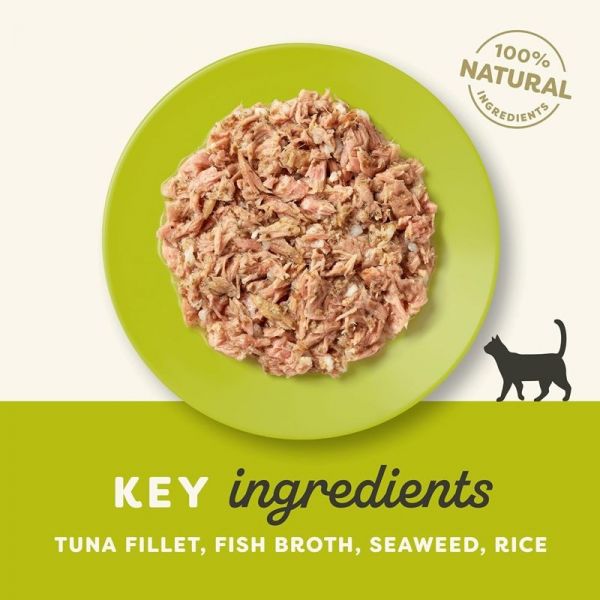 Ingrediente: File de ton 70%, stoc de pește, alge marine 5%, orez