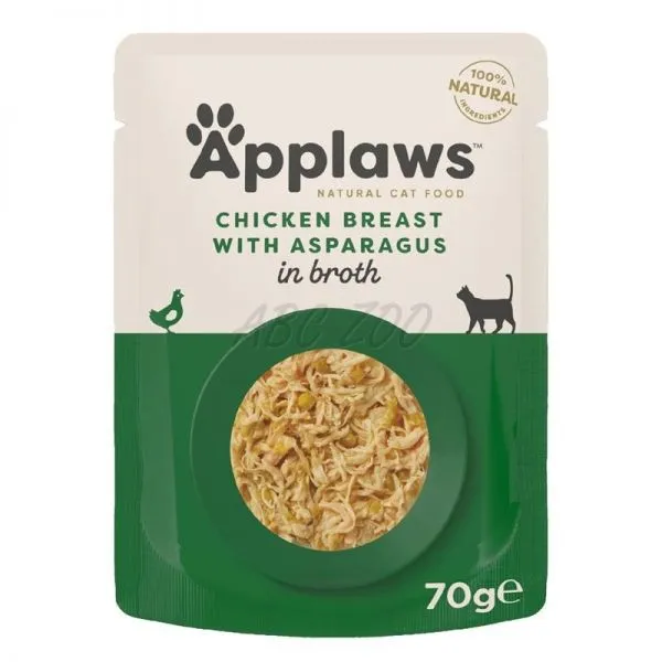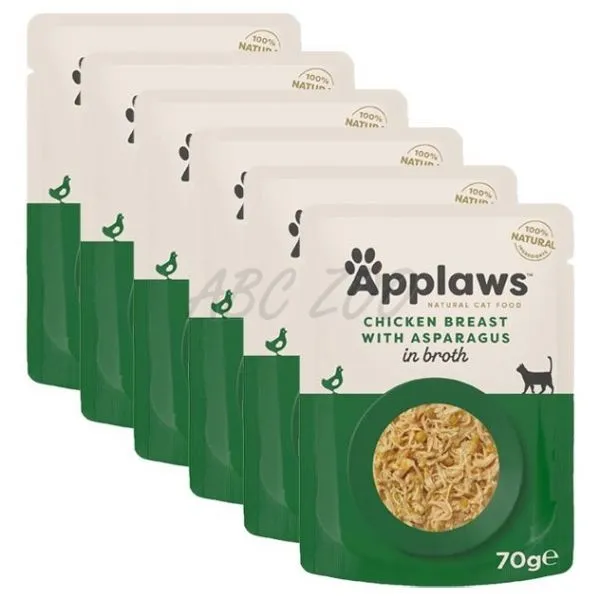 Applaws pentru pisici cu piept de pui și sparanghel în bulion 6 x 70 g