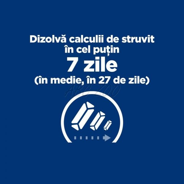 • Dizolvă calculii de struvit în cel puțin 7 zile (în medie 27 de zile)