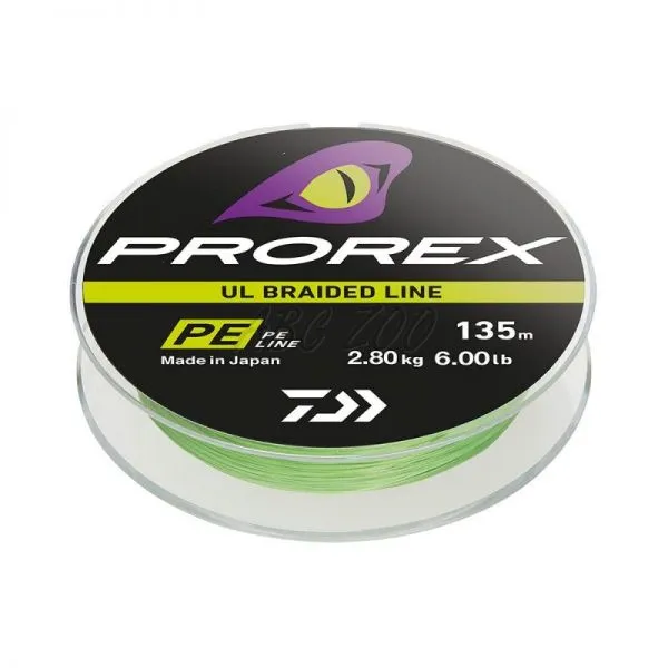 Firul împletit Prorex UL Finesse Braid de la DAIWA este un fir extrem de subțire, fabricat în Japonia, care oferă performanțe excelente în tehnicile de spinning ultra-ușor și fin. Diametrul, indicat pe tamburul de 135 m, este declarat conform specificațiilor japoneze (mm nu sunt menționați!). Acest fir excelent este ideal pentru pescuitul cu năluci extrem de mici, în special pentru păstrăv și biban.