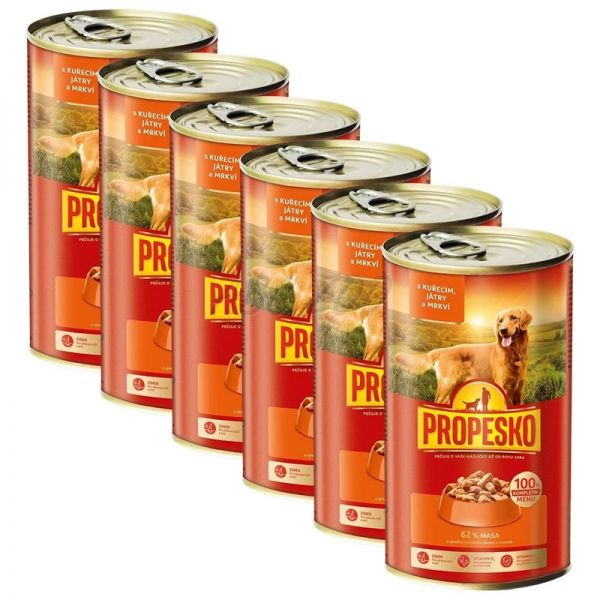 Propesko Dog Conservă cu pui, ficat și morcov în sos 6 x 1240 g