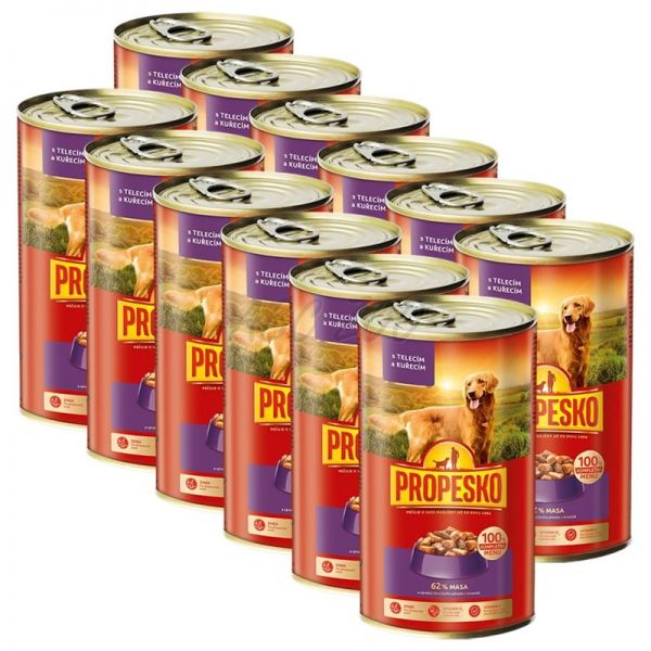 Propesko Canned Dog cu carne de vițel și pui în sos 1240 g