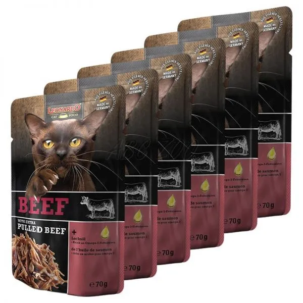 Leonardo este o pungă suculentă de carne de vită pentru pisici adulte.