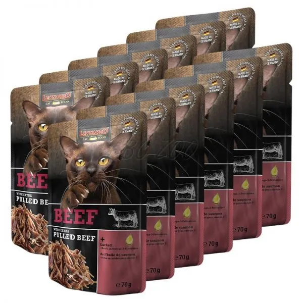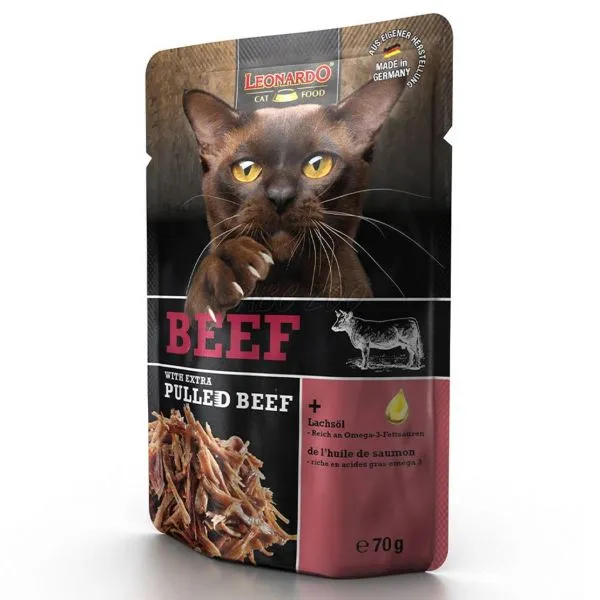 Leonardo este o pungă suculentă de carne de vită pentru pisici adulte.