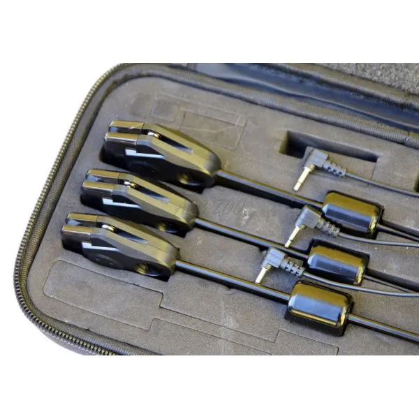 Set – Semnalizator luminos de mușcătură cu corp modelat unic și LED cu culoare reglabilă (7 culori). Cu ajutorul greutății glisante, se poate ajusta cu ușurință greutatea semnalizatorului, inclusiv descărcarea completă. Clema internă cu bilă funcționează fiabil și în siguranță atât cu fire monofilament, cât și împletite, indiferent de diametru. Semnalizatorul se fixează rapid și ușor pe adaptorul de pe pichet cu ajutorul unei cuplaje robuste de tip baionetă.
