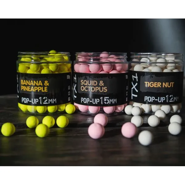TX1 Pop-up este momeala ideală pentru cârlig atunci când este utilizată împreună cu boiliesurile TX1, dacă dorești o prezentare flotantă sau echilibrată critic. Cu o gamă de arome care completează seria TX1 Boilies, aceste momeli vizuale sunt eficiente și ca momeli individuale sau în monturi de tip zig rig. Disponibile în patru arome clasice și eficiente, TX1 Pop-up acoperă toate preferințele uzuale în alegerea momelii: