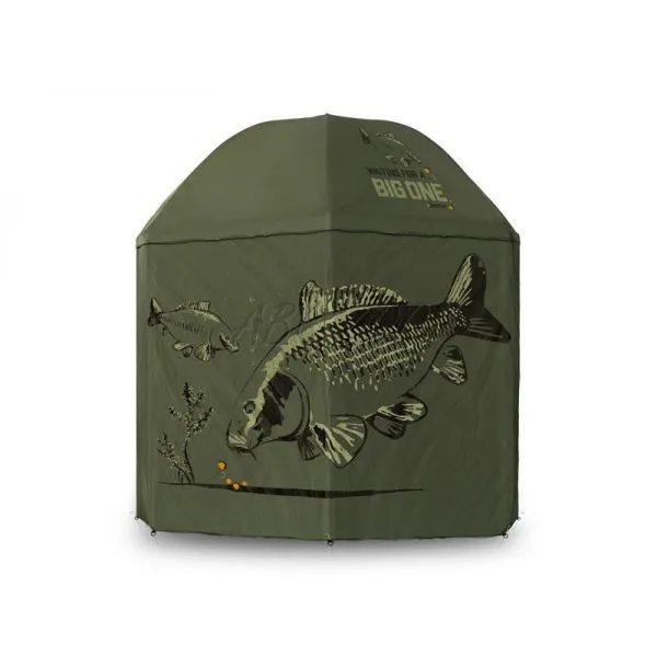 Delphin BigONE CARP este o umbrelă practică ce vă va proteja perfect împotriva vremii nefavorabile în timpul ieșirilor la apă. Designul umbrelei a fost special adaptat pentru pasionații de pescuit la crap, datorită graficii mari și vizibile cu crap de pe cupolă și laterale.