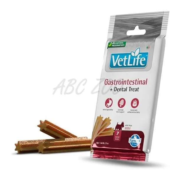 Farmina Vet Life dog Gastrointestinal sunt tratamente dentare concepute pentru câini adulți de rase mici pentru a susține digestia.