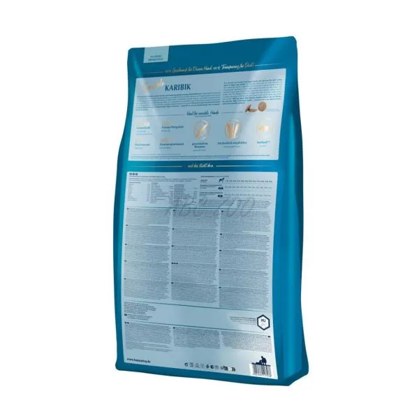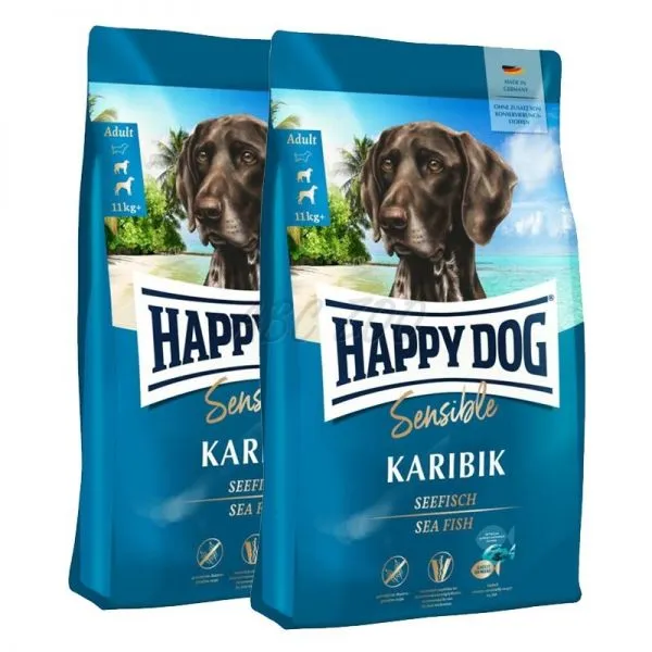 Happy Dog Sensible Karibik hrană completă pentru câinii adulţi indiferent de rasă, cu necesar energetic normal.  Este recomandat de medicii vetrinari şi pentru câini alergici.