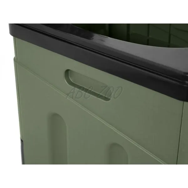 Delphin ToiBLOX are o construcție simplă, pliabilă, care se montează rapid și ocupă foarte puțin spațiu în echipamentul de pescuit. Materialul utilizat este rezistent la deteriorări mecanice și la factorii externi. Datorită construcției solide, suportă și persoane cu greutate mai mare. Designul verde-negru se potrivește perfect cu mediul natural și cu echipamentul pescarului.