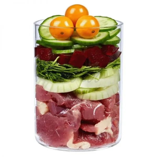 Constituenți analitici: Proteine: 8,9%, conținut de grăsimi: 3,8%, fibră brută: 0,4%, cenușă brută: 1,1%, umiditate: 81,1%, MJ/kg: 3,3