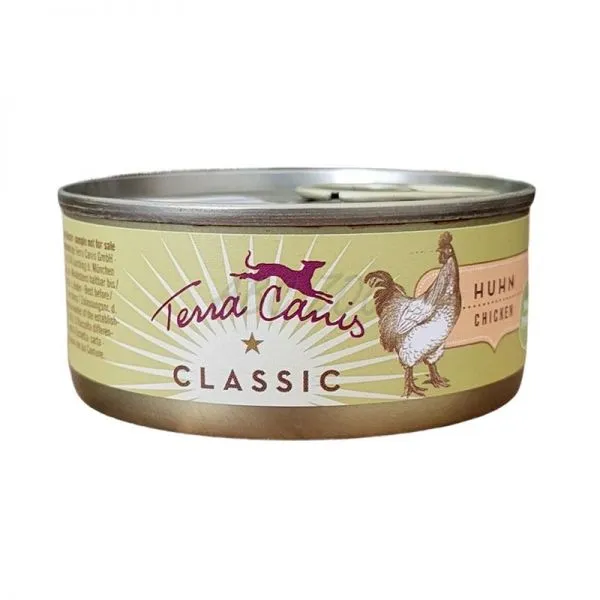 Hrană conservată Terra Canis din linia CLASSIC conține o proporție mare de carne și legume, fructe și ierburi proaspete. Pseudo-cerealele (de exemplu, mei, amarant, orez natural) bogate în nutrienți, ușoare și fără gluten sunt adăugate în cantități foarte mici, ușor digerabile pentru câine (4-10%). Ingredientele naturale (alge marine, argilă minerală, polen de flori, șolduri de trandafir, sare andină, drojdie de bere) furnizează vitamine, minerale și oligoelemente importante. Uleiul de rapiță furnizează acizi grași esențiali valoroși. Toate ingredientele sunt de calitate alimentară, adecvate consumului uman.
