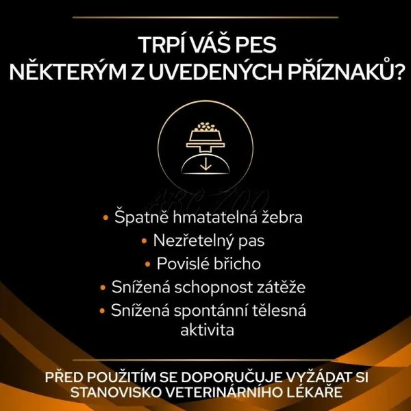 • alimentul este potrivit pentru obezitate, hiperlipidemie la câinii obezi, diabet zaharat la câinii obezi, colită din cauza lipsei de fibre și constipație.