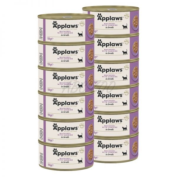 Applaws Hrană conservată pentru pisici cu macrou și sardine în bulion 12 x 156 g