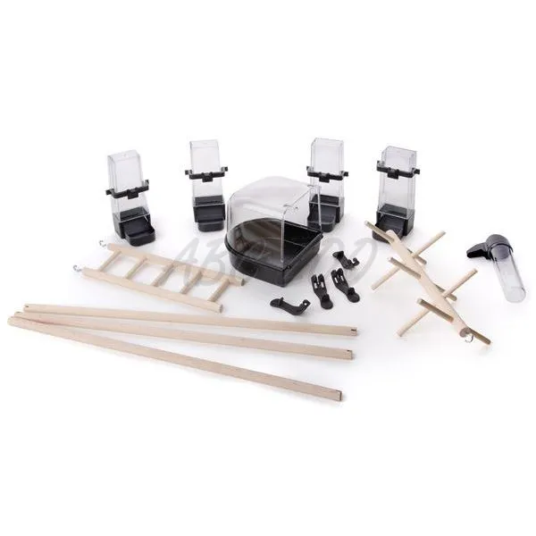 Cușcă mare pentru păsări mici și mijlocii, cu echipare completă. Grilaj cromat. Culoare verde a tăviței. Culoare roșie a tăviței.     Mai multe detalii
