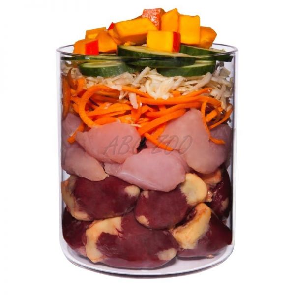 Compoziție: Curcan 51% (inimă de curcan 31%, stomac de curcan 12%, mușchi de curcan 5%, piele de curcan 3%), supă 19%, morcov 7%, țelină 7%*, dovleac 6%*, castravete 3%*, minerale 1%*, făină de cocos, ulei de rapiță, făină de semințe de dovleac, drojdie de bere*, coji de psyllium*, busuioc*, mușețel*, năsturel 0,1%*, coajă de stridii*, coajă de măceșe*, argilă minerală*, spirulină*