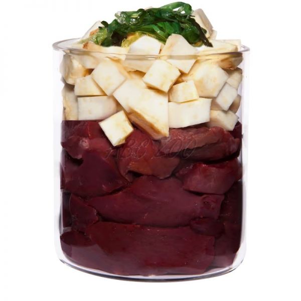 Ingrediente: Inimă de rață (50%), mușchi de rață (10%), pătrunjel (36%), ulei de rapiță, alge marine*, minerale.
