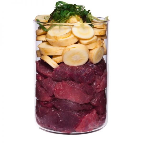 Ingrediente: carne de mușchi de struț 46%, supă 45%, păstârnac 5% *, ulei de rapiță 2%, minerale 1% *, spirulină