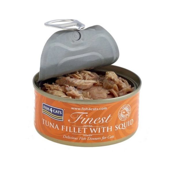 Fish4Cats Finest Tuna Fillet with Squid este o conservă delicioasă pentru pisici, cu ton și calmar, preparată din pește de calitate superioară și legume.