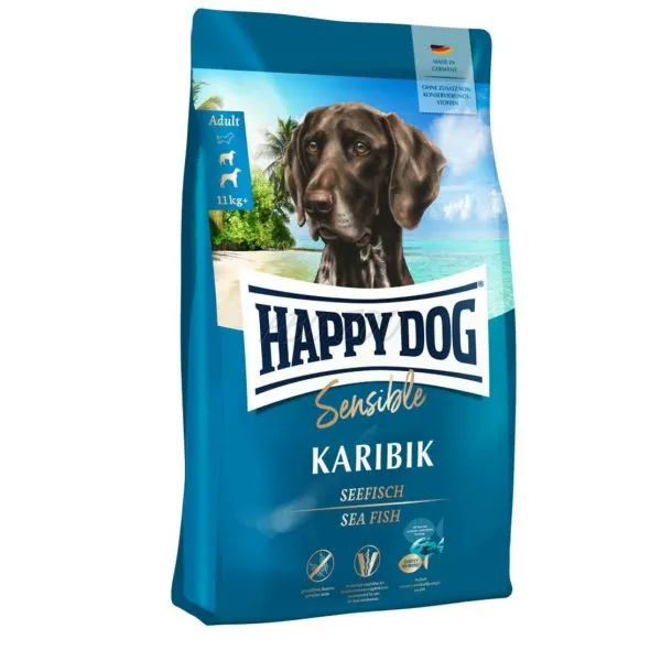 Happy Dog Sensible Karibik hrană completă pentru câinii adulţi indiferent de rasă, cu necesar energetic normal.  Este recomandat de medicii vetrinari şi pentru câini alergici. Mai multe detalii