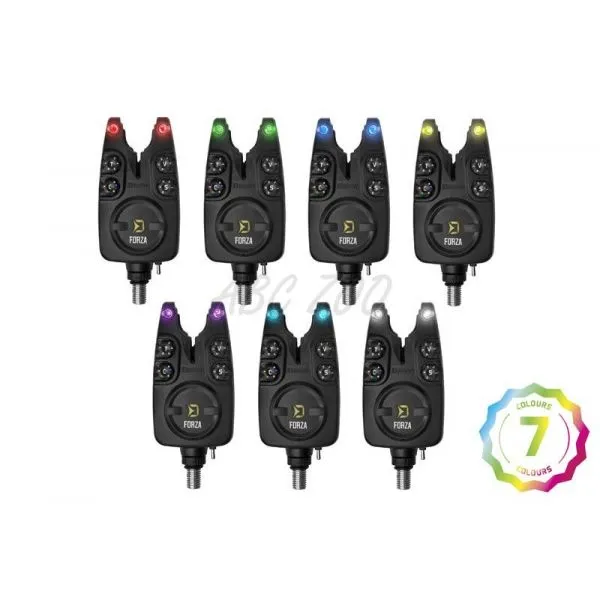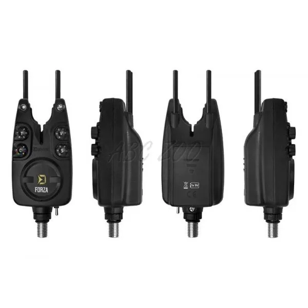 Tonalitatea semnalului (comutator T) și sensibilitatea în intervalul 1–9 cm (comutator S) pot fi selectate în 5 trepte. În cazul unei trăsături „înapoi” (drop-back), avertizorul emite un ton diferit. Volumul se reglează de asemenea în 5 niveluri, nivelul 0 reprezentând modul silențios. Un avantaj incontestabil al avertizoarelor FORZA Life+ este posibilitatea de a alege dintre 7 culori pentru LED-ul de semnalizare. Astfel, fiecare își poate alege culoarea preferată, iar dacă dorește o schimbare, o poate modifica cu ușurință folosind comutatorul rotativ “C (colour)”, fără a fi nevoie de un avertizor nou. În partea de jos se află o intrare pentru conector jack de 2,5 mm pentru conectarea unui indicator luminos. Fiecare avertizor este echipat cu filet pentru montarea snag gear-urilor, care sunt incluse în set. În plus, primiți capace de protecție rezistente pentru avertizoare și un suport de masă pentru receptor!