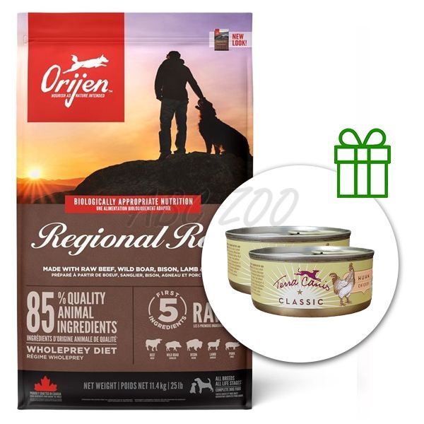 Orijen Regional Red Dog 11,4 kg + 2 x conservă Terra Canis GRATUIT