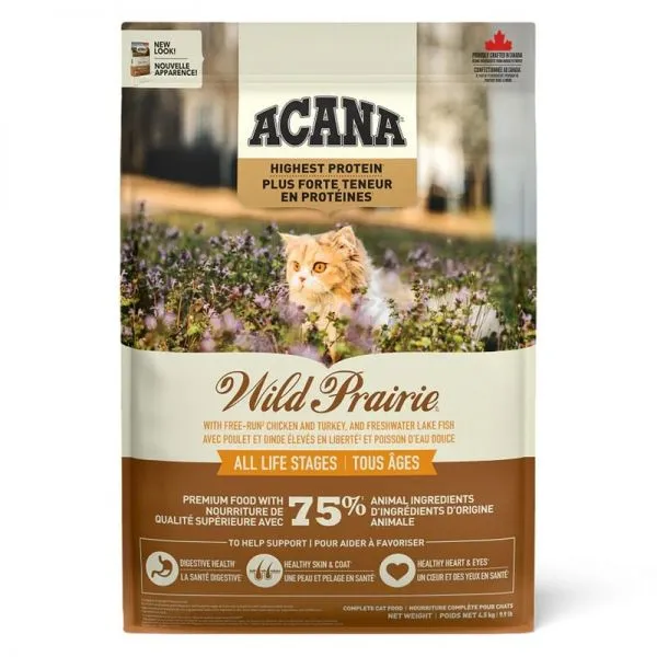 Acana Cat Wild Prairie este o hrană premium pentru pisici de toate vârstele, caracterizată printr-un conținut ridicat de carne proaspătă și ingrediente naturale.