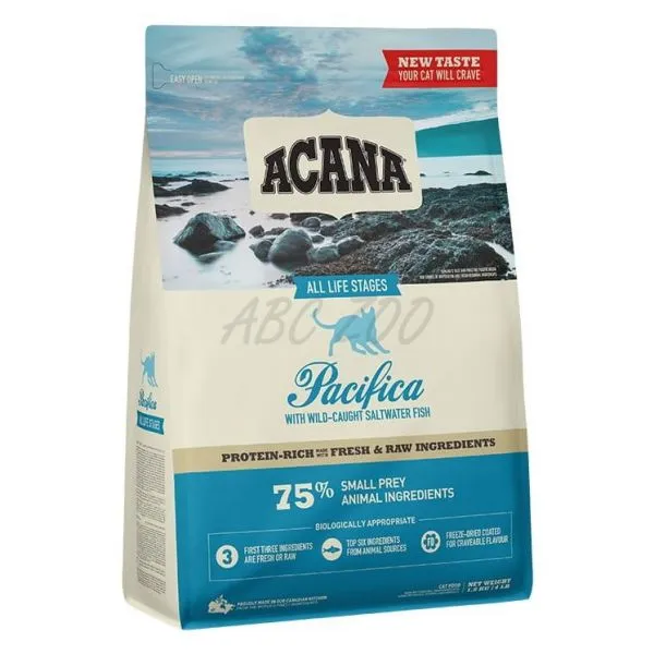 Acana Cat Pacifica este o hrană premium pentru pisici de toate vârstele, cu un conținut ridicat de carne din pești sălbatici.
