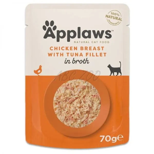 Applaws Piept de pui cu file de ton în supă este o hrană premium naturală în pachet pentru pisici, fabricată din carne de înaltă calitate din piept de pui și ton în supă delicioasă.