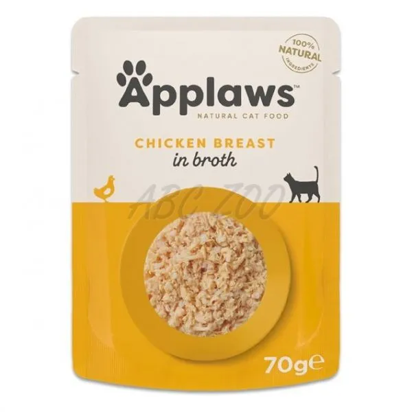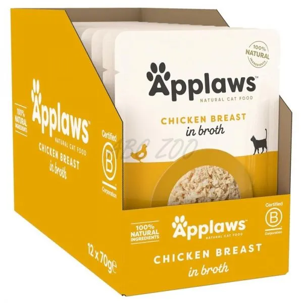 Applaws Piept de pui în supă este o hrană premium naturală pentru pisici, fabricată din carne de înaltă calitate din piept de pui, într-un delicios bulion.
